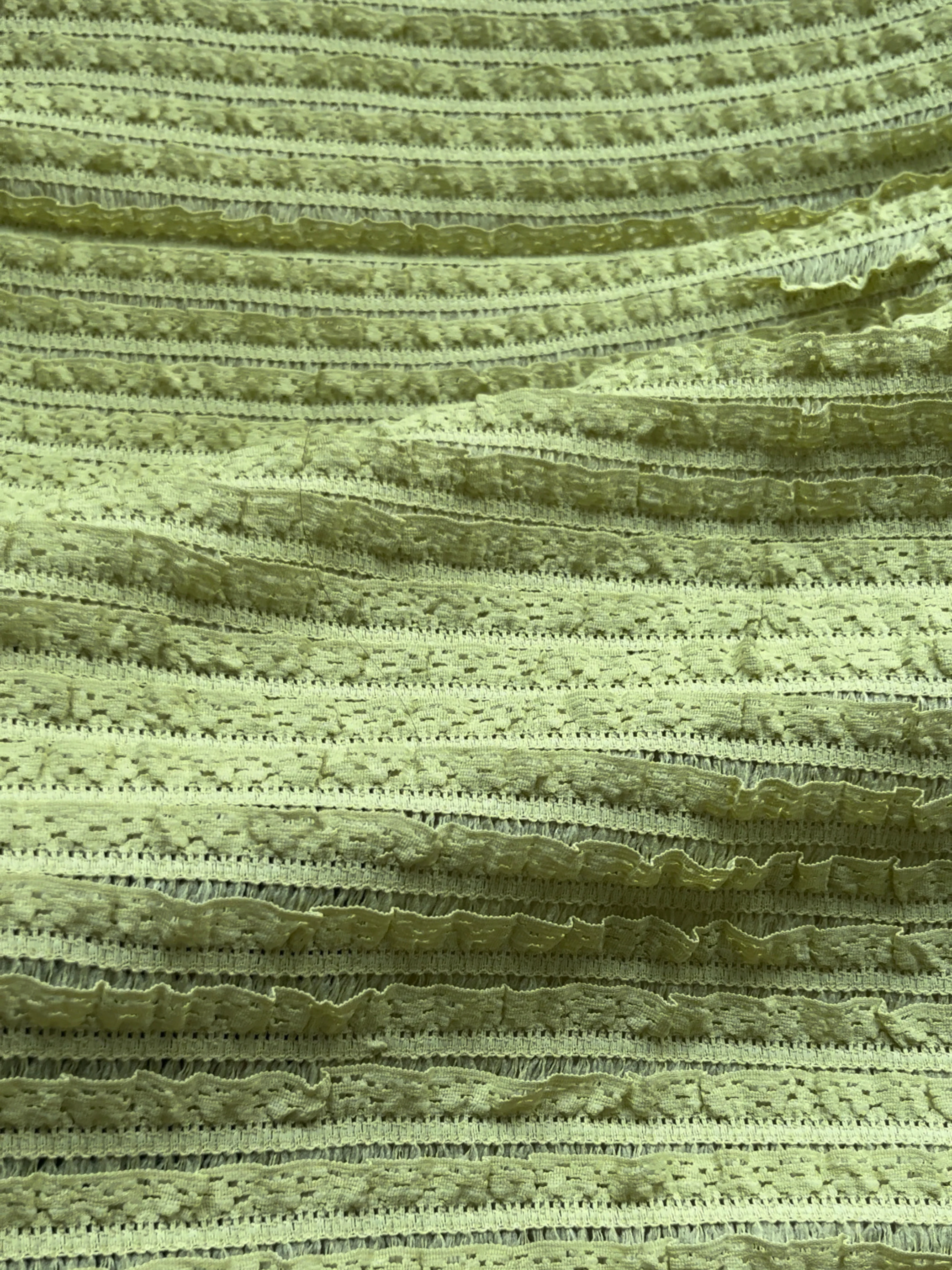 - Hem: Multi-tiered lace panels that form a cascading frill around the waist